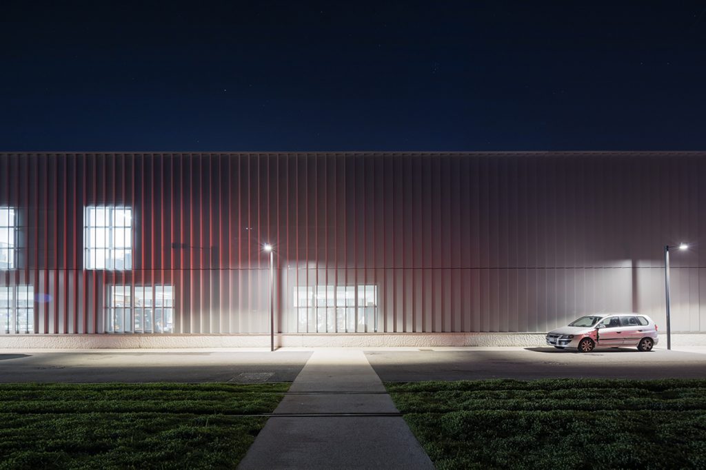 A l’extrémité nord du site, l’atelier de maintenance et la station-service constituent le paysage visible depuis l’autoroute A8. Le plan fonctionnel remplit le site, et le bâtiment simple et rationnel en plan, nous donne l’occasion de créer un parc industriel où la rigueur du plan est confirmée par un usage raisonné des matériaux.